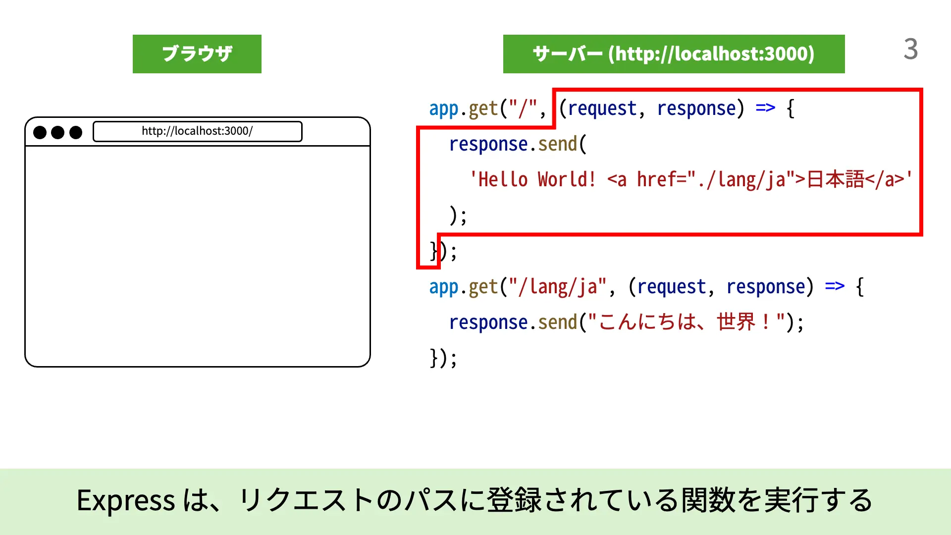 3. [7行目] 4行目と同様に、/lang/jaというパスに対するリクエストを受けたときに実行される関数が登録されます。